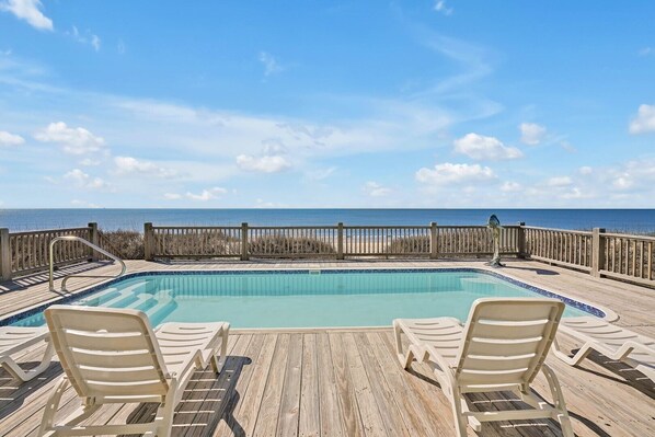 A heated pool - Beautiful,7BR/6.5BA Oceanfront Home-Elevator,Pool,Dog Friendly-Sleeps19 (Oak Island)