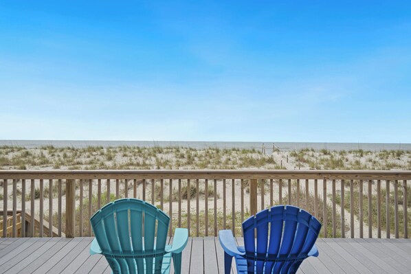 On the beach - Smart Pelican: Dog-Friendly Oceanfront Cottage with Modern Kitchen (Oak Island)