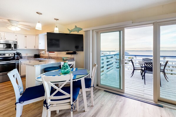 Lovely end unit with a unobstructed view of the bay. Included many of the necessities from home and was walking distance to some of our favorite shops, restaurants and back.