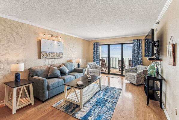 Perched on the oceanfront, PLAZA 1402 offers a beautifully renovated retreat. Wake up to the sunrise from your balcony and unwind with a glass of wine as the stars appear. The condo boasts warm LVP floors, granite kitchen counters, and a bar area with a wine fridge.