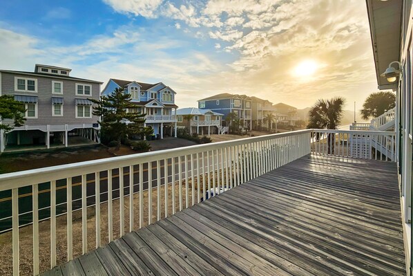 2nd-row modern home with beach access, trailer parking, deck, & outdoor shower provides golfing on-site and more. Stay connected with in-room WiFi.