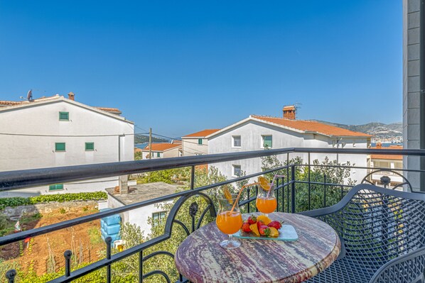 Located just a stone’s throw away from the beach, this sea-view holiday apartment is ideal for a cosy and comfortable vacation with family and friends. Outside, the apartment offers al fresco dining, a shared garden and a common barbecue for you to spend carefree moments of relaxation and make the most of the mild Mediterranean atmosphere of Čiovo Island.