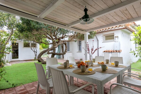 Outdoor dining - Casa Sergio. Portion of villa a few steps from the sea. (Pittulongu)