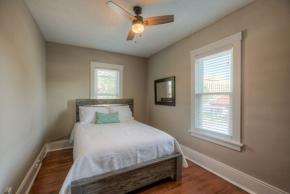 This home includes a spacious open main floor concept featuring a formal dining space for meal gatherings, a beautifully remodeled kitchen, family room, and a spacious front porch for relaxation. All perfect touches for maximizing your entertainment space! This space includes four bedrooms and two full bathrooms, sleeping ten people comfortably. Thoughtful touches of detail from exposed brick, beautiful wood work, and tile back splashes showcase the unique quality offered by this wonderful property. Upstairs: Three bedrooms (queen size beds) and one bathroom. Main floor: Living room, dining room, kitchen, front and back porch. Lower Level: One large bedroom with two queen size beds as well as bathroom and Laundry room. Included: fully stocked kitchen with all the necessities. Bathrooms include all essential toiletries. All linens, towels, and pillows will be provided with a stress free relaxing stay.