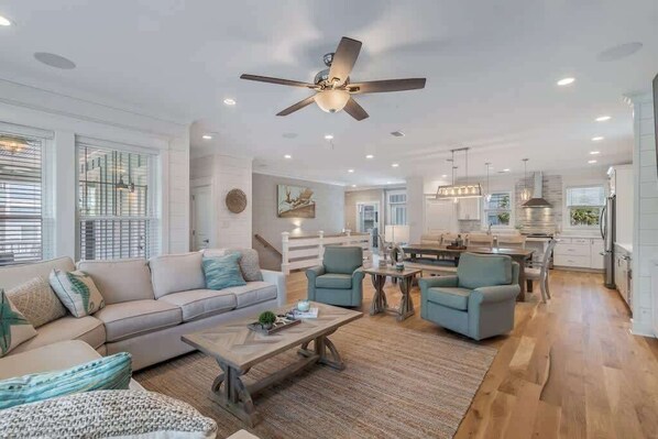 Welcome to The Salty Seahorse, your spacious coastal retreat perfect for large families or group getaways. The bright, open-concept living, dining, and kitchen area is the heart of the home, offering a wonderful space for your group to gather and entertain.