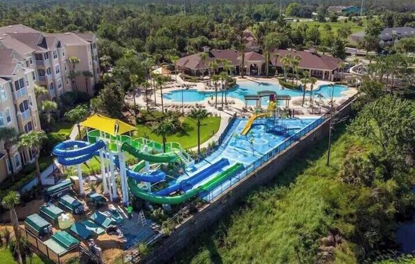 It is just a short walk to the fabulous Windsor Hills clubhouse with Olympic-size pool w/ zero-depth entry and water slide, 50-person movie theater, and sundry shop. Plus, our townhouse is in the building that is closest to the fun-filled playground. Resort Pool is 140,000 gallons of clear blue water, heated to comfortable 79-80 degrees year-round! Relax in our hot tub or play a round of poolside ping-pong. Young adults love the 80 foot winding water slide and children love to dance in the Children’s Fountain! THE MARKET PLACE & GRILL is OPEN DAILY 8:00 AM - 8:00 PM and the GRILL is open daily 10:00AM - 7:30PM. Sports Equipment Rentals available through the resort clubhouse. Please visit the Welcome Desk to rent any equipment for a small, refundable fee. Golden Transportation will be available onsite for taxi services from 9 a.m. – 12 p.m. and 5 p.m. to 8 p.m.