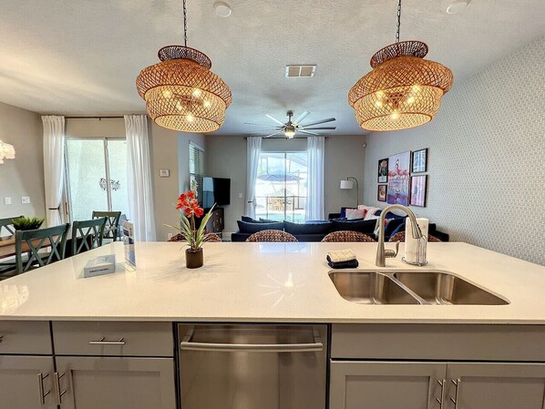 Come stay in the tropical Bodacious Oasis! This 4 bedroom 3 bathroom townhouse is situated in Champions Gate with full access to the Oasis Clubhouse amenities. Enjoy your own private pool and full complimentary use of a BBQ grill when you stay at this piece of paradise! Each room has a private flat screen TV so there’s no more fighting over the remote control. Located just 22 minutes from Walt Disney World property, this home has everything you and your family need to enjoy a relaxing vacation!