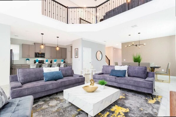 Welcome to a world of comfort and fun in this bright and spacious 5-bedroom, 4.5-bath Villa at Storey Lake Resort, designed for families and groups of up to 14. Just minutes from Disney, Universal and Orlando’s top attractions, this modern retreat combines private comfort with unbeatable resort-style amenities.