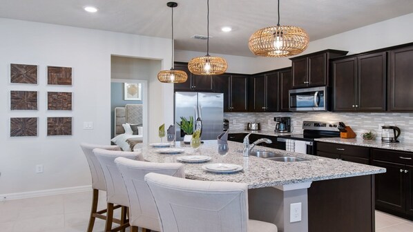 Relax on the lounge in the spacious luxury living room after a day spent at Disney and stream all your favorites on the big screen Smart TV – the perfect place to gather together for a cozy movie night in.
