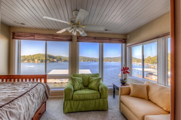 It's not easy finding a great house on the water to stay with a family of 29 but we found it. This house was a perfect fit. Plenty of room for our family & fully equipped for all ages. The large dock on the water was the center of our daytime activities of swimming, fishing & two bays for our rented tritoon boats. Multiple refrigerators, a fully equipped kitchen, plenty of hot water for showers, plenty of on-site parking & wonderful view overlooking the dock & water. A Gerbes (part of the Kroger family) grocery store & Walmart Supercenter only 7 miles away. While there were other boaters, the water was not crowded. Would we stay there again? Absolutely.