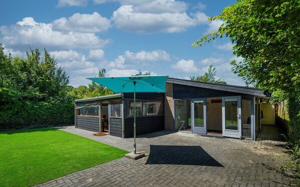 The beautiful, large and very private garden is completely fenced and therefore perfect for your children or dogs to play in. A garden hose with sprinkler is available so you can rinse off your dogs after a day at the beach. The grass is always green here, thanks to the beautiful artificial lawn, which gave this house its name. There is a large terrace where you can enjoy the sun. You can bring your bicycles and store them in the shed. The house has a carport where you can park two large cars.