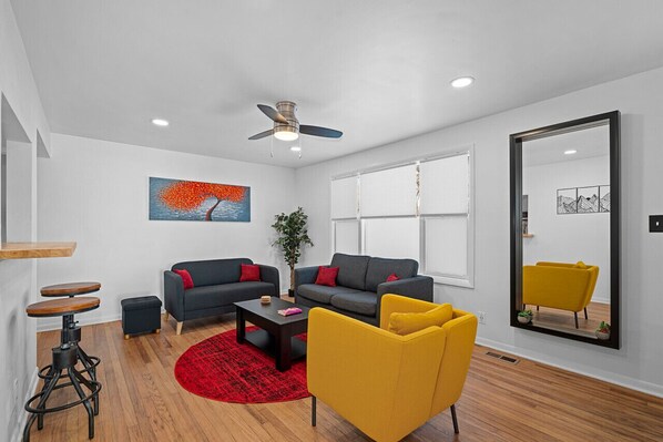 Welcome to Overland Park Retreat in the Heart of Old Town Overland Park! This charming 3-bedroom, 2-bathroom home blends modern comforts with timeless charm, offering a perfect retreat for any traveler. Enjoy the open-concept living area with stylish furnishings and natural light. The fully equipped kitchen features stainless steel appliances and granite countertops. Need to work? High-speed fiber internet is available throughout the home. Relax and stream your favorite shows on the massive TV!