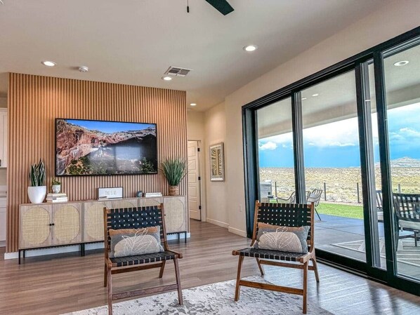 Escape to the serene, surf-themed Lake Powell Surf Inn retreat in Page, Arizona. With its Zen-inspired decor and plush artificial grass backyard, this haven is perfect for relaxation and yard games. Stargaze at night or explore nearby trails by day with smart TVs and a fully-equipped kitchen.