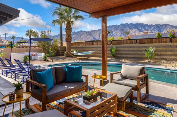 Be warned: once you step into this sleek, light-filled home, you may never want to leave. The newly remodeled 3-bedroom, 3-bathroom mid-century modern space has it all. Rest easy in the spacious bedrooms, which boast plush furnishings, ultra-comfortable bedding, and stylish decor. Catch up on your favorite Netflix series on the Smart TV in the living room while you relax on the enormous L-shaped couch. Entertain friends and family in the well-equipped, open-plan kitchen, which has everything you'll need during your stay. Enjoy breakfasts at the breakfast bar and dine family-style at the circular dining table or at the shaded outdoor al fresco dining area. Spend plenty of time soaking up the sunshine in the enormous, fenced-in backyard area. Go for swims in the pool and work on your tan as you nap on the poolside loungers. What more could you ask for? This flawless home leaves nothing to be desired.