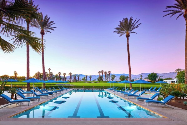 JW Marriott Desert Springs Resort & Spa is near San Jacinto Mountains and El Paseo Shopping District. Visitors can golf, enjoy Spa Desert Springs, or relax by outdoor pools with cabanas. The resort offers American dining, Pilates classes, a poolside bar, and attentive staff.