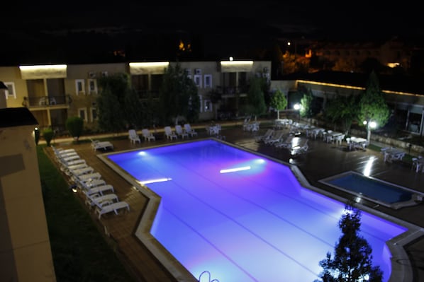 Travelers soak in natural hot springs surrounded by Pamukkale's beauty, then choose between poolside relaxation or exploring nearby natural wonders