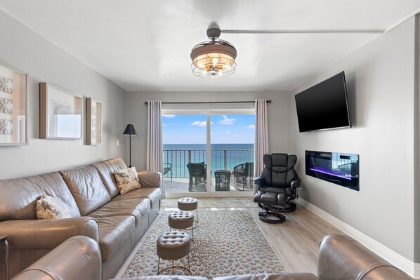 On the 13th floor of this Gulf-front condo, enjoy an incredible view from the private balcony or great room. With elegant beach-style decor and modern amenities like granite countertops, a leather sofa that doubles as a queen-size bed, and flat-screen TVs in each room.