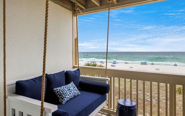 Both balconies face the gulf, providing unobstructed panoramas of the immaculate beach.
