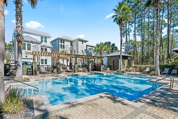 Our quiet gated community has a private pool for your enjoyment that is steps away from the house. We also provide 8 beach cruisers and a toddler trailer for your family to enjoy at no additional charge. Almost everything on 30A is within biking distance, so this amenity allows you to experience the charm of each beach community (Rosemary, Alys, Watercolor, Seaside, etc.) without ever stepping foot in your car.