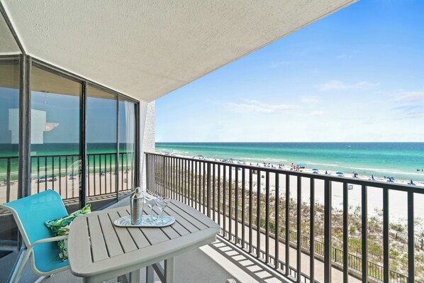On-site amenities include beachfront swimming pool, hot tub, an elevated sundeck, and optional Beach Service. Each tower has two elevators. Direct private beach access is only steps away. Exercise facilities are not open for guest use. However, there are a number of local gyms nearby that cater to vacationers.