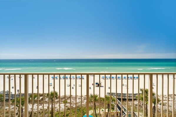 Relax in the open-concept living area or step outside to your private Gulf-front balcony, where unobstructed ocean views and coastal breezes set the tone for a true beachfront escape.