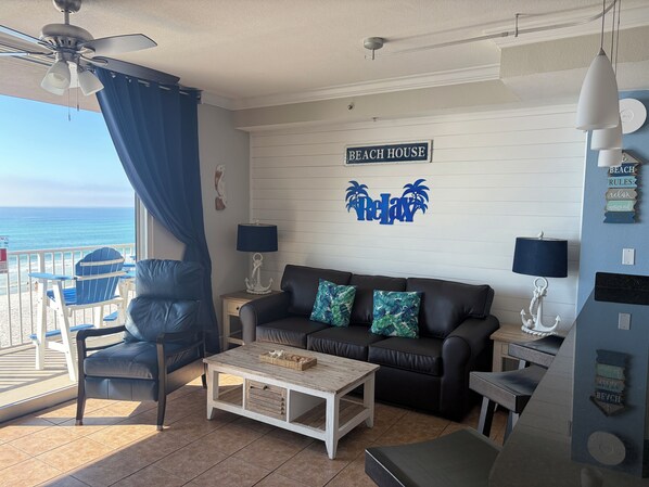Beachfront Family Friendly Condo Near Pier Park. 1 bedroom, 2 bathrooms. Sleep 6