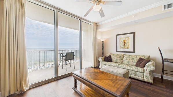 Living Room: Sleeper sofa that will sleep 2 Flat-screen TV Gulf-facing balcony