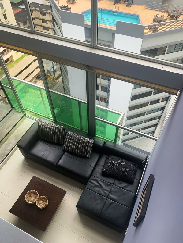 Nestled in the heart of Panama City's Financial District, Modern Loft - Amazing Views - Financial District offers a luxurious retreat with panoramic city views. This beautifully decorated loft features a spacious living area, two comfortable beds, and modern amenities like an amazing huge lap pool and gym.