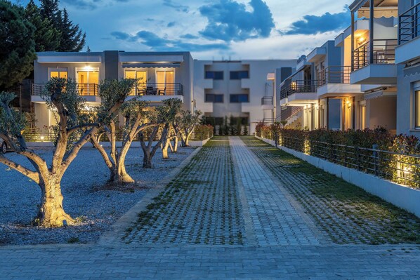 Surrounded by lush gardens, Antigone Residential Complex offers a serene escape just minutes from Costa Ofrynio Beach. Stroll through the nicely landscaped grounds or unwind in your comfortable residence, with parking spaces readily available.
