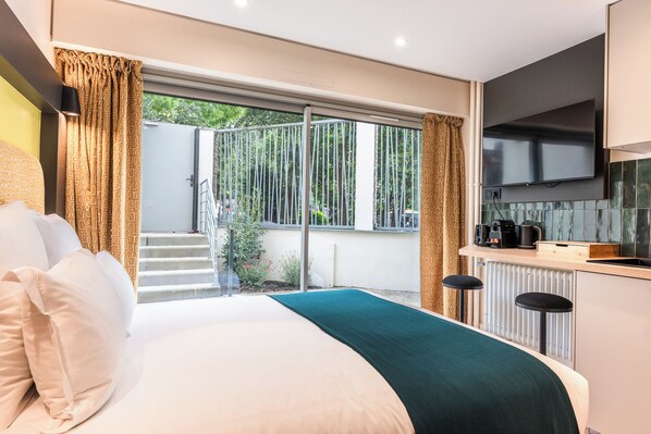 Maison Menilmontant is a luxury family apartment with 5 bedrooms each having a 5-star queen size bed, TV, high speed internet access, bathroom with shower, separate WC, kitchenette with stove, microwave, fridge, Nespresso machine, kettle and a dining / working table.