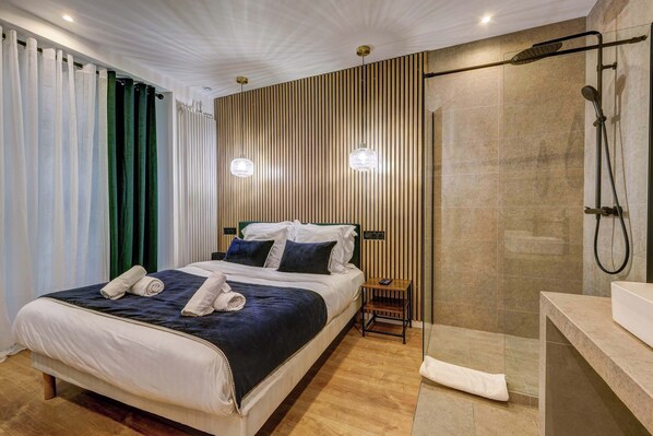 - Bedroom 1: Double bed (140x200cm) and bathroom ensuite