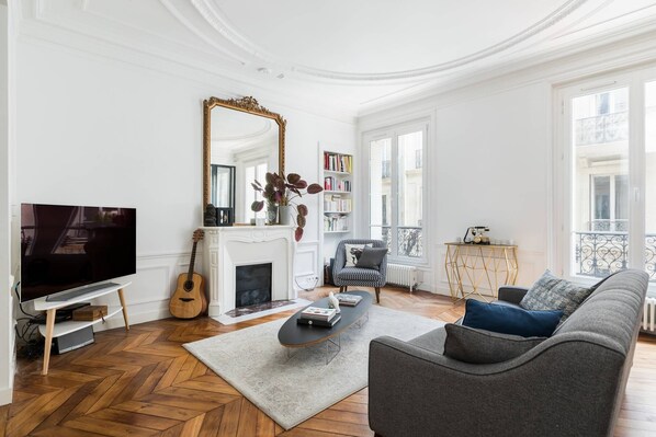 TV, fireplace - Rue Sainte-Beuve by onefinestay (Paris)