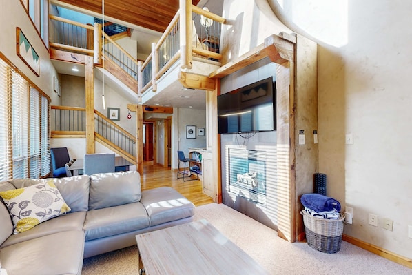 All guest rooms at Mountain-View Condo | Private Hot Tub & Entry, Across Lift & Armstrong Trail boast perks, such as fireplaces and air conditioning, in addition to amenities, such as offices and Internet access.