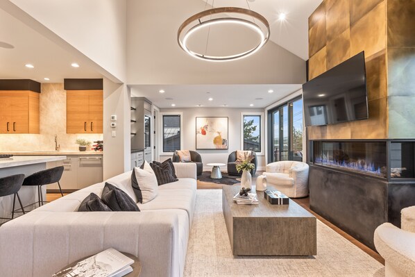 Stunning Outdoor Retreats: Unwind and entertain on the nearly 1,000 square feet of outdoor living spaces. Revel in a large outdoor kitchen off the rear of the home, a snow-melt deck leading to a firepit, and an XL snow-melt deck off the front of the kitchen and great room. The upper-level primary suite boasts its own snow-melt deck with breathtaking south-facing views over Old Town.