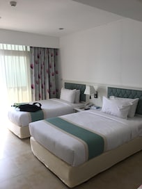โรงแรมกว้างมาก มีสระว่ายน้ำหลายสระ มีชายหาดกว้าง
