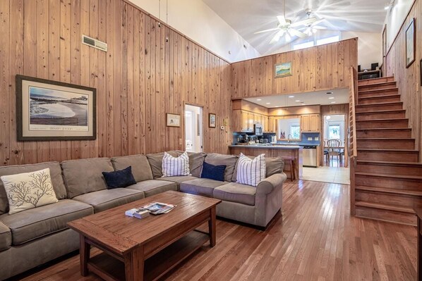 This 4 Bedroom 3 Bath beach house is situated in North Litchfield and just a few minutes walk from the beautiful white sandy beaches of the Atlantic Ocean. The beach house boasts a spacious living room with a large plush corner couch, fireplace, and flatscreen tv – perfect for resting up after a long day on the beach, golfing or shopping around town. Adjacent to the living room is a fully equipped kitchen and formal dining room with french doors to the large outdoor deck.
