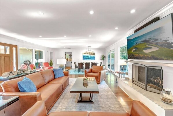 In the heart of Pebble Beach, this recently remodeled home offers a tranquil retreat. Nestled between two world-renowned golf courses, Spyglass Hill and Monterey Peninsula Country Club (MPCC), guests can enjoy luxurious details like floor to ceiling windows wrapping around the inner courtyard and high speed Internet. Relax by the gas fireplace in the formal living area or unwind in the private backyard with BBQ, rocking chairs and dining table for 8.