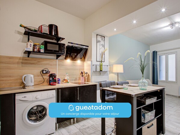 Furnished, air-conditioned apartment in a pedestrian street in the heart of the city.