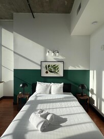 Step into Sosuite at Independence Lofts, where history meets modern comforts in a 1900s printing press factory turned unique living space. Enjoy a stroll along the Rail Park and savor brunch at the on-site restaurant. With dedicated workspaces, fully-equipped kitchen, and pet-friendly perks like an art mural lobby by local artist Natalie McDonald - plus keyless smart check-in and luxe bath amenities by Beekman 1802.