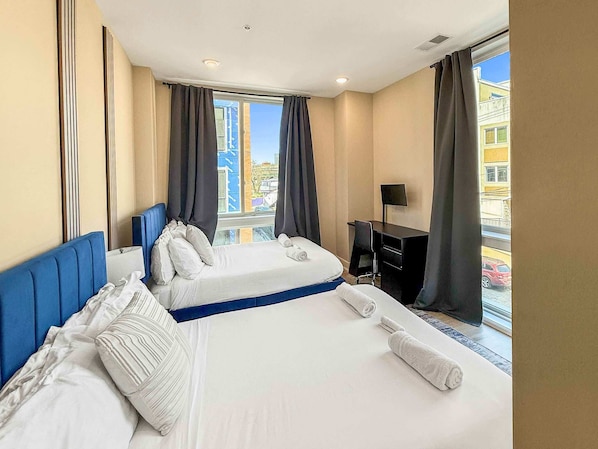 Bedroom 1: Drift into restful sleep in the serene first bedroom, featuring two full-sized beds with premium linens and plush pillows. Generous closet space keeps your belongings organized and accessible.