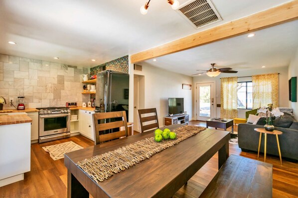 Come relax in beautiful Scottsdale! Located within minutes of Old Town Scottsdale's Shopping, Dining, Golfing and Nightlife. Close to Tempe, Loop 101 & 202 Freeways, Giant Stadium and other Spring Training Ballparks. Whether you are coming for business or pleasure this home is in a great location and is perfect for couples, business or a quick getaway with your friends or family. This comfy and cozy home features 3 bedrooms, living room with 55" flat screen Smart TV with Youtube TV live, and a galley style eat in kitchen with farm sink, traditional coffee maker, microwave, and gas stove. The backyard is great for entertaining! Covered back patio has outdoor seating and a gas outdoor fire pit. Enjoy a relaxing evening at home either grilling burgers on the outdoor BBQ grill or hanging out on the sofa watching TV in the living room.