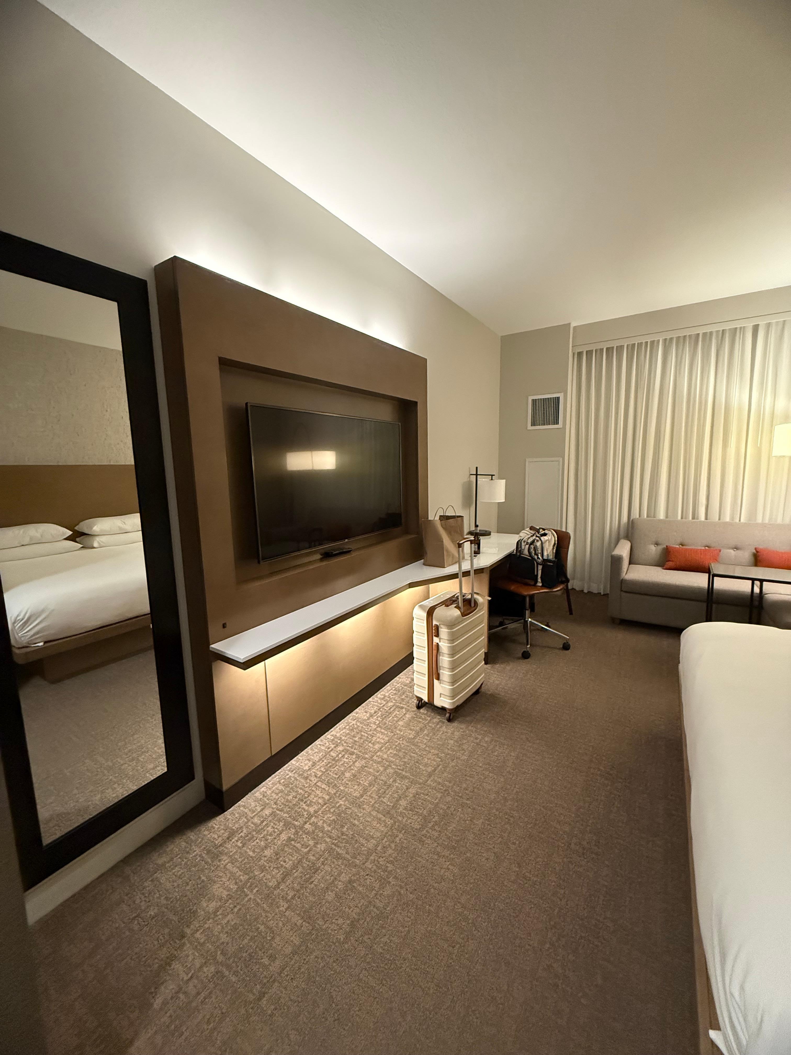 This hotel was amazing. The staff was great. It was beautiful and the view from the hotel is amazing. There’s this grand mirror in the lobby that just gives bougie will definitely be staying there again and there’s free parking and it just gives luxurious.
