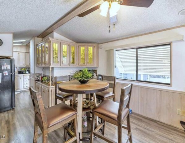 In our Mesa Community Vacation rental, enjoy your home away from home within a gated community. Relax in the pool, challenge friends to a tennis match or unwind at the on-site restaurant. With an exercise facility and games room nearby, this 55+ retreat offers convenience and comfort.