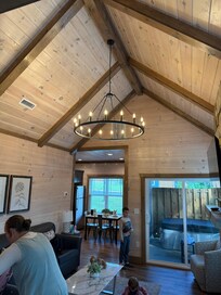 Nestled in downtown Pigeon Forge, this charming cabin offers the perfect escape. Relax in the private hot tub or cozy up by the stone fireplace and enjoy scenic views just steps from local attractions, dining, and shopping. With a fully equipped kitchen and high-speed Wi-Fi, you'll feel right at home.