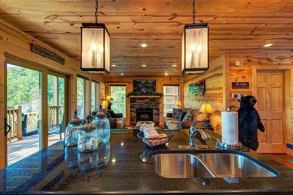 Frosty Bear's living room is the center of attention on this level and the floor to ceiling windows let in plenty of natural light! Watch the big game on the large flat screen TV or snuggle up next to the natural gas fireplace, regardless we know you will feel totally relaxed in Frosty Bear.