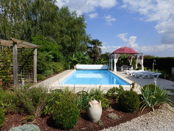 The whole area, including the pool, can be lit at dusk to take advantage of the pleasant evening summer temperatures in this part of France. All these stunning facilities can be seen from the two storey 5 bedroom gite on the left as you enter the courtyard.