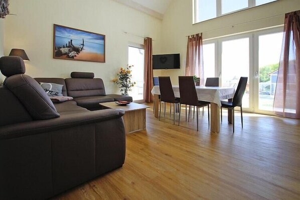 Enjoy the wonderful view over the Plauer See: The holiday apartment is on the upper floor of the newly built, high-quality and comfortably furnished terraced house with a south-facing balcony. It is located directly at the sports boat harbor in the former fishing town of Plau am See and offers a beautiful view of the water. A boat rental is on the doorstep, so you can go on discovery tours or go fishing. You can walk to the center and old town of the charming town and climatic health resort of Plau am See from here. Various restaurants and cafés serve Mecklenburg specialties and small shops invite you to browse. In addition, there are sights such as the Plau castle tower from 1449 with its deep dungeon and narrow ascent, the well-known lifting bridge from 1916 and the town church from the 13th century, which can be seen from afar. Highlights include: WLANActivities in the area: How about a guided fishing trip or a cutter trip? Otherwise, take a trip on one of the passenger ships or explore the lake on a paddling tour. If you prefer to keep your feet dry, you can take a city tour with the small Plauer Bahn or discover the beauty of the landscape during a bike tour or a carriage ride. Ambitious athletes can test their skills in the climbing park. Excursion tips: the Bärenwald Müritz, the Wangeliner Garden and the Lübzer Kunstspeicher.Mobility: Not suitable for people with restricted mobility About Belvilla At Belvilla, you experience holidays exactly the way you want. Choose from an extensive range of holiday homes, apartments and caravan parks from Europe to Florida. From a cabin by the Norwegian fjord to an exclusive villa on the Côte d'Azur, and from an apartment in Rome to a country estate in Tuscany. At Belvilla you will find the perfect holiday home for an unforgettable time with your family, partner or friends. You will also find holiday homes for larger groups, spread across various regions in Europe. Belvilla offers a wide variety of holiday homes: small and cosy with a sauna or spacious with an outdoor pool, roof terrace and numerous bedrooms. At Belvilla, for example, you can choose from holiday homes in prime locations, with luxury amenities and homes particularly suitable for families. Of course, many holiday homes also have a space reserved for your dog. You can choose from practical holiday homes in popular holiday destinations, city houses in cosmopolitan cities such as Venice or Rome, dreamy holiday homes in top locations and spacious holiday homes with unique furnishings. Besides holiday homes by the sea, Belvilla also offers holiday homes with swimming pool and/or wellness facilities.