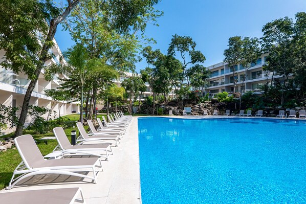 Close to Playacar Golf Club and Playacar Beach, Spacious condo with private balcony, pool , kitchen , WIFI & prime location has plenty to offer.