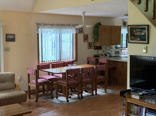 Very charming three bedroom home (sleeps 6) right by community pool and tennis courts, with working wood fire place, outdoor fire pit, gas grill in private gated community. Bedrooms 1 and 2 on second floor have queen size beds. Bedroom 3 has 2 full size beds.