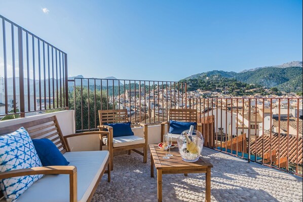 Can coa was a delight from start to finish. Clear check in instructions were followed without any issues. It was impeccably clean and very well equipped for the needs of our group. We used the terraces and pool area a lot during our stay and each area was bathed in sunlight at different times of the day. These areas also are blessed with fantastic views over Pollensa and the surrounding mountains . The townhouse has been beautifully refurbished and is a short walk from the centre but is also far away enough to be very quiet at night and everyone slept soundly. We enjoyed every minute and would love to return.